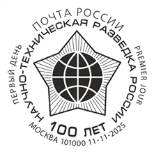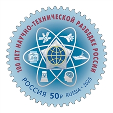 На почтовой марке изображён стилизованный символ атома; внутри его орбит — схематичные изображения военного корабля, истребителя, искусственного спутника Земли, атомной электростанции, микросхемы, искусственного интеллекта; в центре — малая эмблема Службы внешней разведки Российской Федерации.