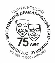 На оригинальной марке изображён символический образ зрительного зала и занавеса, на основном изображении — здание Московского драматического театра имени А.С. Пушкина.