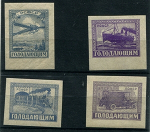 № 203А/1. Полная серия марок «Голодающим» РСФСР 1922 г. (4 марки) Транспорт
