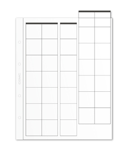 Данный лист подойдет для размещения памятных монет в вертикальных альбомах с кольцевым механизмом формата Optima – имеет размеры 200 × 250 мм, 35 ячеек 30 × 32 мм. Файл скользящий и прозрачный, выполнен из ПВХ высокой плотности.