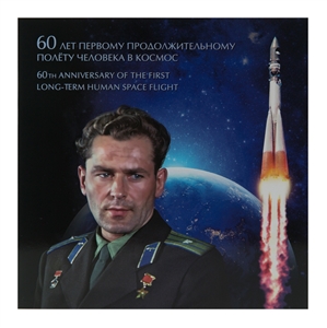 № СН1055. Сувенирный набор в художественной обложке "60 лет первому продолжительному полету человека в космос" (с надпечаткой)