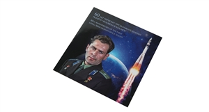 В состав сувенирного набора в художественной обложке "60 лет первому продолжительному полету человека в космос" входит малый лист с надпечаткой нового номинала.