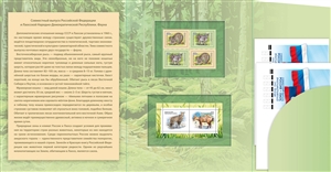 В состав сувенирного набора в художественной обложке "Совместный выпуск Российской Федерации и Лаосской Народно-Демократической Республики. Фауна" входит: