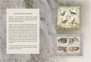 В состав сувенирного набора в художественной обложке "Фауна России. Ящерицы (2-ая форма выпуска)" входит квартблок №3582