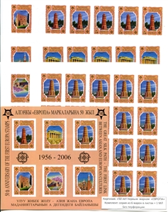 № 209А/1. Киргизия. 50 лет первым маркам «Европа» (серия из 6 марок в листах + 1 м/л без перфорации)