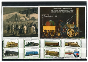 № 3185к. Полный выпуск Доминики 1992 г. Паровозы