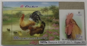 № 5855к. Выпуск КНДР 2017 г. Куры 3D