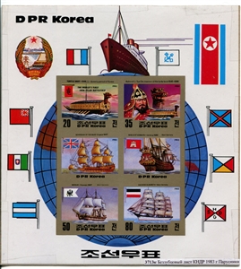 № 3713к. Беззубцовый лист КНДР 1983 г. Парусники