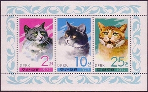 № 3714к. Блок КНДР 1977 г. Кошки