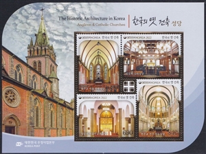 № Южная Корея – 20220415. Южная Корея. Историческая архитектура Кореи II, Церкви, почтовый блок