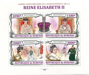 № 201А/13. Малый лист Бурунди. 60 лет коронации королевы Елизаветы II