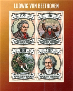 № 201А/21. Малый лист Бурунди. Людвиг Ван Бетховен (1770-1827)