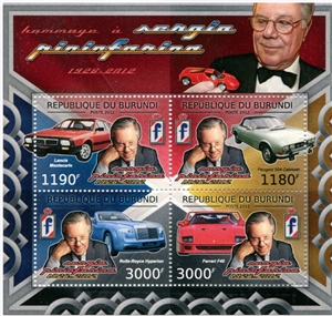 № 201А/25. Малый лист Бурунди. Серджио Пининфарина (1926-2012)