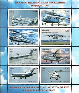 № Таджикистан - 2036-2043. Таджикистан. 100 лет гражданской авиации. Малый лист из 8 марок