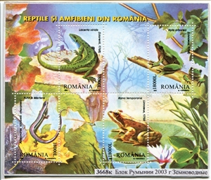 № 3668к. Блок Румынии 2003 г. Земноводные