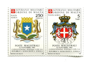 № МГ-МР71. Мальтийский Орден. Гербы. Совместный выпуск с Республикой Сомали №А5/А6 (авиа почта, 2 марки в паре)
