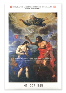 № МГ-МР175А. Мальтийский Орден. Живопись. Картина работы А.А. Бонифаци, Витербо, церковь Дель Суфраджио. «Крещение Иисуса». Блок №40