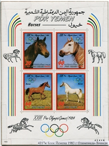 № 4217к. Блок Йемена 1983 г. Олимпиада-Лошади