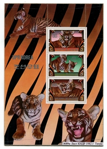 № 3689к. Лист КНДР 1982 г. Тигры