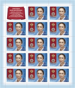 № 3535. 100 лет со дня рождения М.М. Плисецкой (1925–2015), балерины (надпечатка нового номинала и текста на марке 2017 г. №2291 «Полный кавалер ордена «За заслуги перед Отечеством». М.М. Плисецкая (1925–2015), артистка балета»)