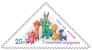 На почтовой марке изображены символичные образы глиняных игрушек, соответствующие традициям художественного промысла, сложившегося на территории Пензенской области.