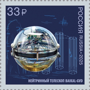 На почтовой марке изображен нейтринный телескоп Baikal-GVD.