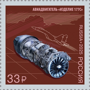 На почтовой марке изображен авиадвигатель «Изделие 177С».