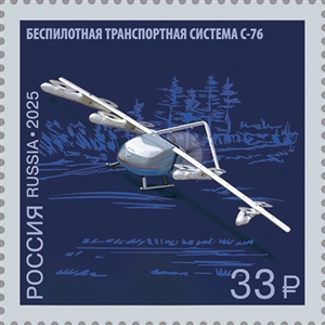 На почтовой марке изображена беспилотная транспортная система С-76.