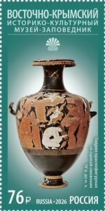 На почтовой марке изображена гидрия краснофигурная со сценой омовения, Аттика (середина IV века до нашей эры) из собрания ГБУ «Восточно-Крымский историко-культурный музей-заповедник».