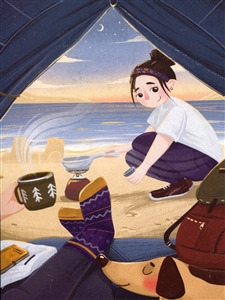 № ВО-1348. Почтовая эко-открытка для посткроссинга «В палатке у моря»