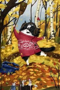 № ВО-1294. Почтовая эко-открытка для посткроссинга «Кот танцует»