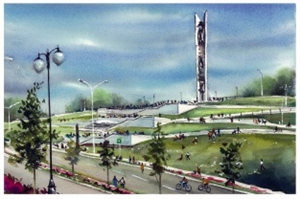 № ОХ/030/003. Открытка Ижевск «Монумент "Дружба народов"», (акварель)