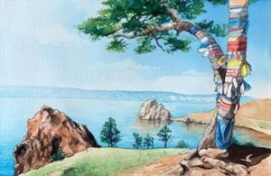 № ОХ/037/004. Открытка России «Озеро Байкал», (акварель)