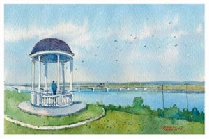 № ОХ/171/006. Открытка Пермь, река Кама «Коммунальный мост», (акварель)