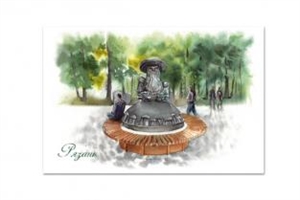 № ОХ/431/002. Открытка Рязань «Памятник "Грибы с глазами"», (акварель)