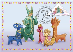 На почтовой марке изображены символичные образы глиняных игрушек, соответствующие традициям художественного промысла, сложившегося на территории Пензенской области.
