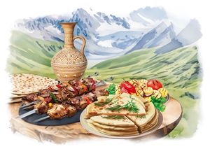 Кавказская кухня формировалась веками под влиянием горного климата, традиционного уклада жизни и соседства разных народов. За одним столом могут встретиться блюда карачаевцев, чеченцев, осетин, дагестанцев, ингушей и кабардинцев, каждое из которых отражает характер своего народа. Повсеместно подают шашлык и другие блюда из мяса. Хинкал — визитная карточка дагестанской кухни. Чуду — хрустящие лепёшки с разнообразными начинками: мясом, зеленью или творогом. Жижиг-галнаш — традиционное чеченское и ингушское блюдо из отварного мяса с клёцками из пшеничной или кукурузной муки, подаётся с чесночным соусом и аджикой. Хингалш — тонкие лепёшки с тыквенной начинкой, которые готовят на дровяных печах. Осетинские пироги — главное достояние осетинской кухни. Готовят их с различными начинками. Ирон цыхт — домашний сыр, который добавляют в пироги или подают как отдельное блюдо. Хычины — круглые лепёшки с начинкой из мяса, картофеля, сыра и зелени. Символизируют солнце и изобилие в карачаево-балкарской кухне.