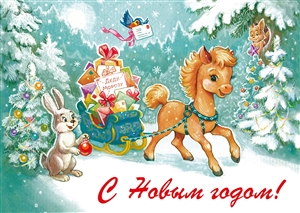 № 2025-211/4. С Новым годом! Лошадка везёт подарки