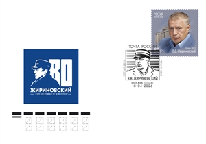 The postage stamp provides a portrait of the politician and the founder of the Liberal Democratic Party of Russia V. Zhirinovsky against the building of the State Duma of the Russian Federation.