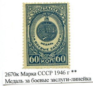 № 2670к. Stamp of the USSR 1946. Medal for Military Merit-ruler