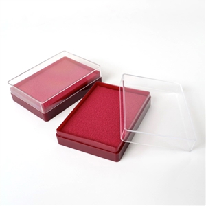 № 36000294. Plastic case (58 × 78 × 22 mm), burgundy base, transparent plastic lid, burgundy color