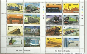 № 3469к. Issue of Mongolia 1992. Steam locomotives, 16 stamps