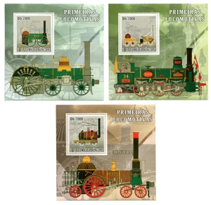 № 305А. Republic of Sao Tome and Principe. Set of postal blocks “Steam Locomotives”