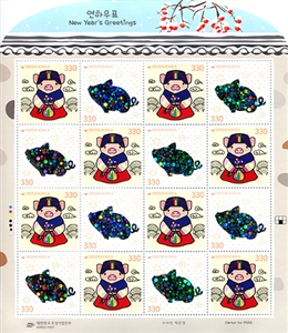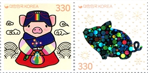 № Ино-105М. South Korea. Happy New Year greetings. A series with 2 stamps