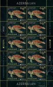 № Азербайджан - 1939. Azerbaijan. Europe 2024. Underwater Flora and Fauna. Green Sea Turtle