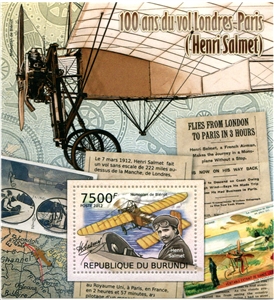 № 201А/1. Postal block of Burundi. 100th Anniversary since the London-Paris flight (Henri Salmet)