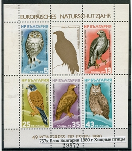 № 757к. Postal block of Bulgaria 1980. Predatory Birds