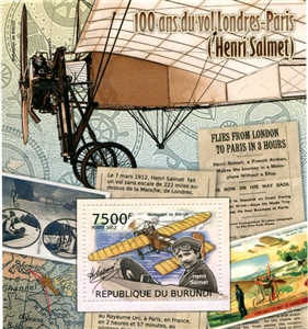 № 202А/9. Postal block of Burundi. 100th Anniversary of the London-Paris flight. Henri Salme