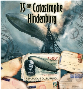№ 202А/10. Postal block of Burundi. 75th Anniversary of the “Hindenburg” airship disaster