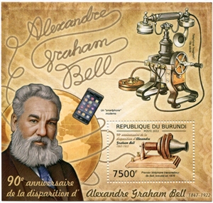 № 202А/11. Postal block of Burundi. 90th Birth Anniversary of Alexander Graham Bell (1947-1922)